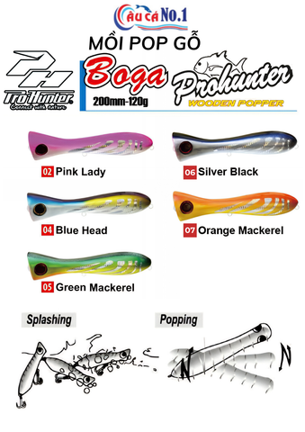 MỒI CÂU POPPING - POP GỖ PROHUNTER BOGA 200MM/120G - TOP WATER