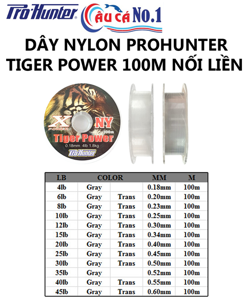 DÂY CÂU NYLON PROHUNTER TIGER POWER là loại dây giá rẻ, có độ dẻo dai thích hợp để câu lure, câu cá vặt,...