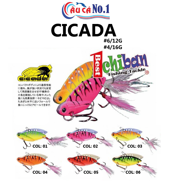 MỒI CÂU GIẢ BẰNG SẮT ICHIBAN CICADA được tạo ra cho dân câu chuyên nghiệp, với action rung tuyệt vời, thiết kế đẹp mắt, màu sắc đa dạng và chất lượng tuyệt vời. Phù hợp với cả nước mặn và nước ngọt.