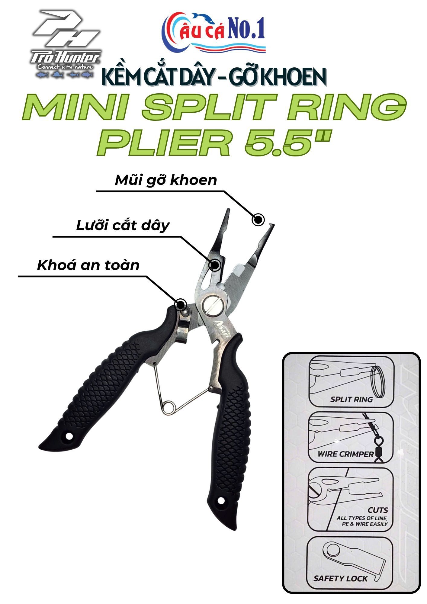 KỀM CẮT DÂY - GỠ KHOEN PROHUNTER MINI SPLIT RING PLIER 5.5''