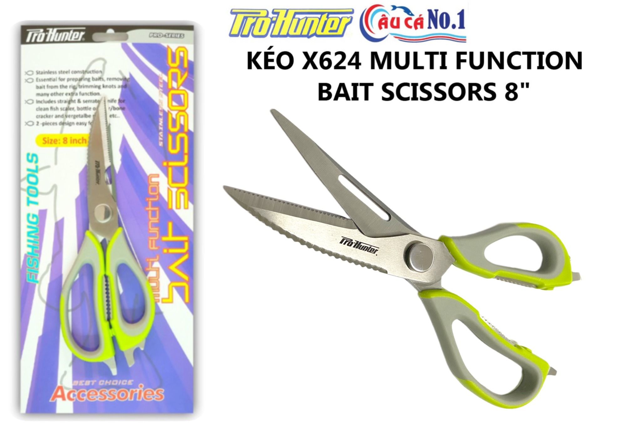 Prohunter X624 là mẫu kéo đa chức năng (Multi Function). Thích hợp cho cả việc đi câu như cắt mồi, cắt dây.... cho đến các công dụng thường ngày và nhà bếp.