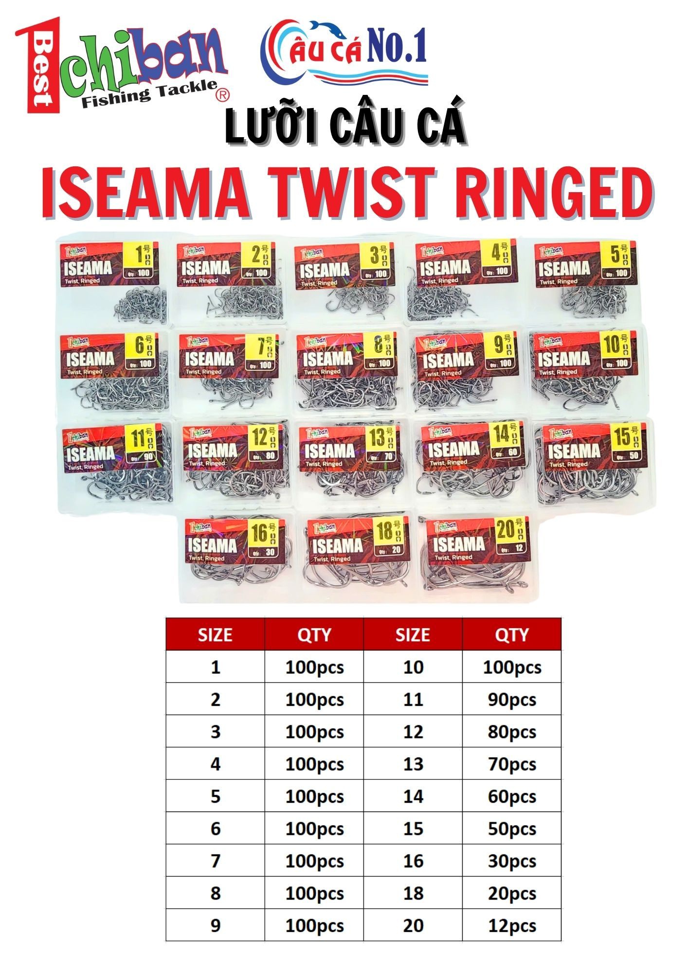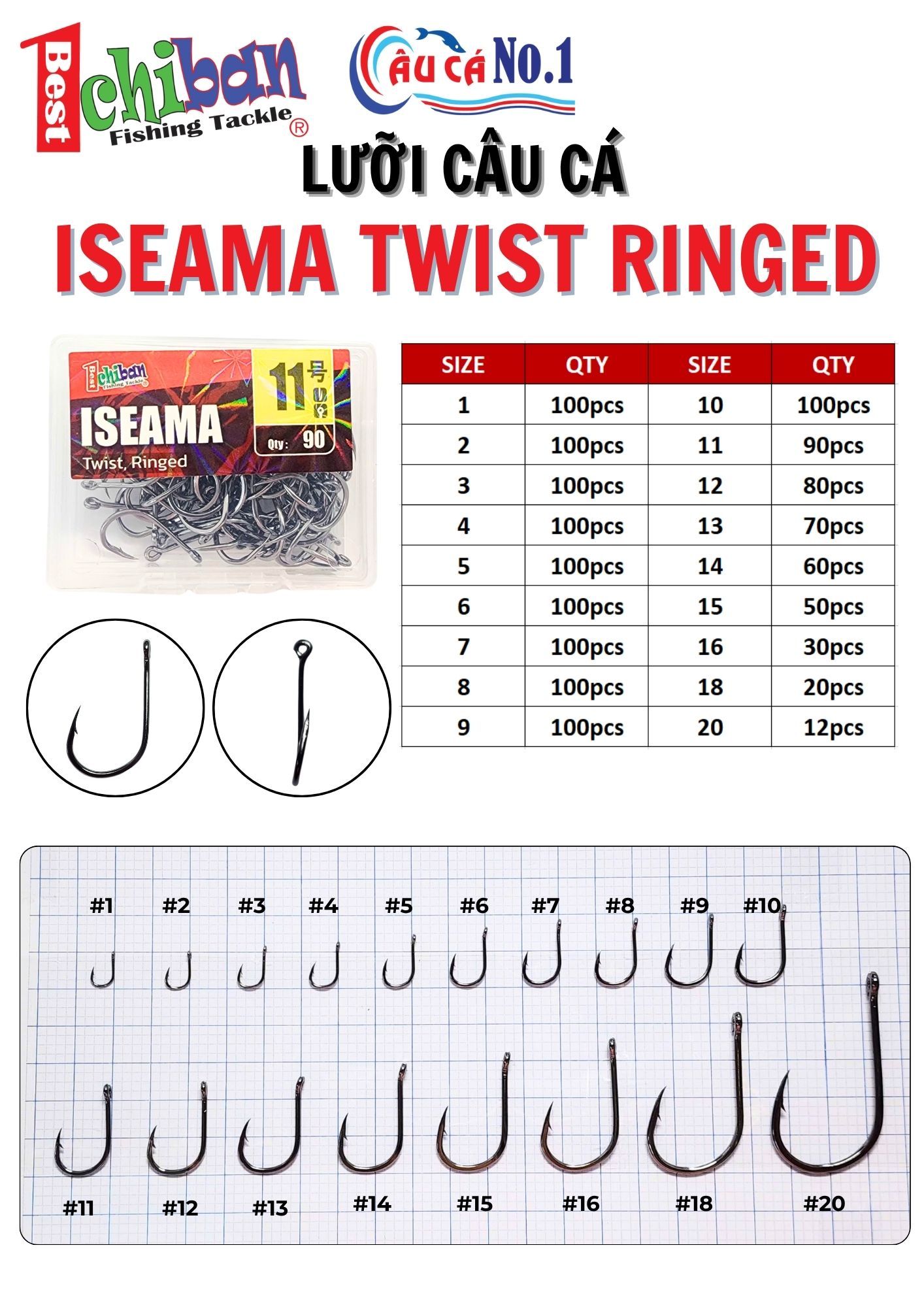 Có nhiều size từ #1 đến #20 – phù hợp với từng loại cá và kỹ thuật câu.