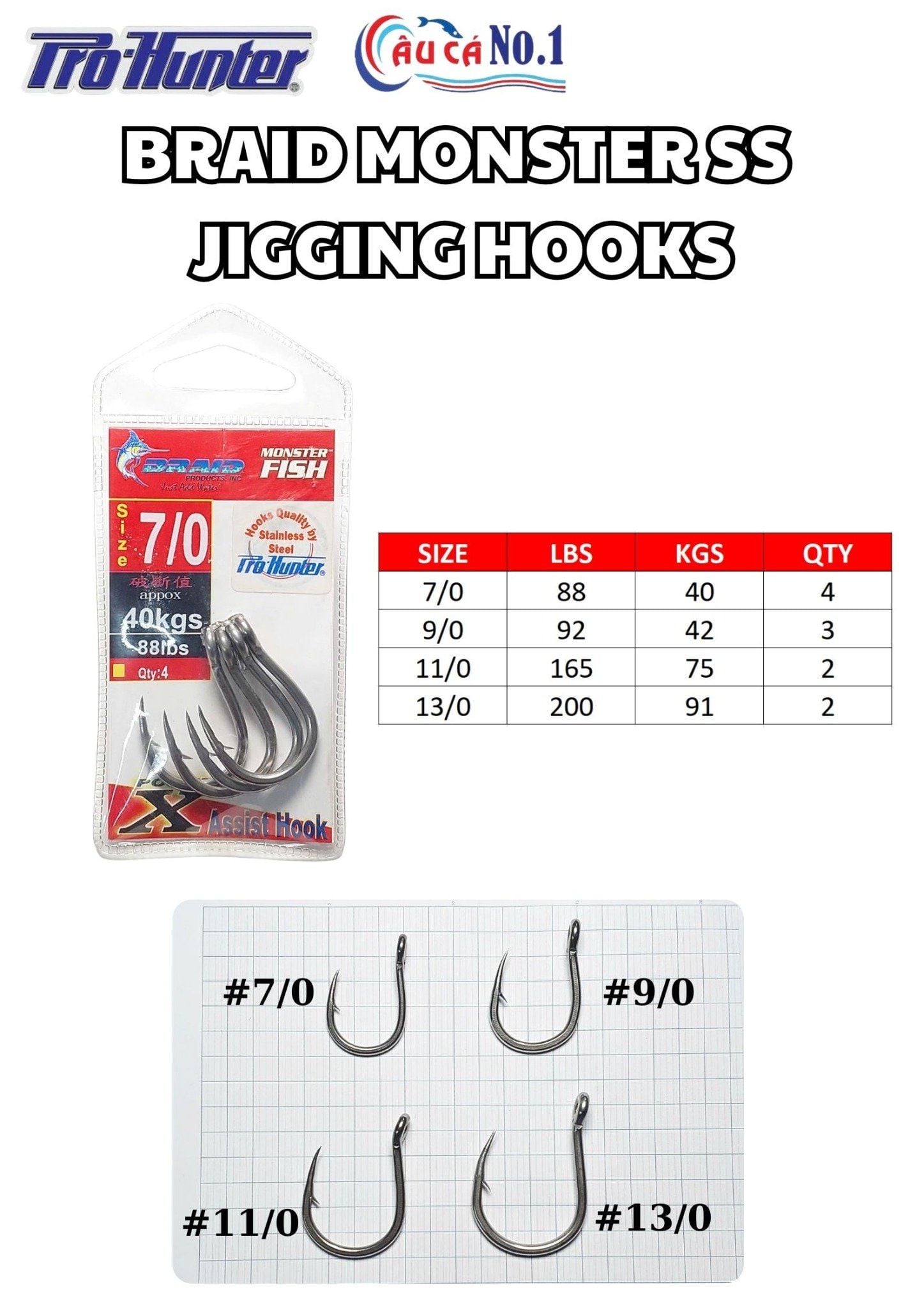 Braid Monster SS Jigging Hooks là dòng lưỡi câu cao cấp chuyên dùng cho jigging, câu cá lớn, câu biển sâu với độ bền cực cao. Sản phẩm được sản xuất bằng thép không gỉ (Stainless Steel), chống ăn mòn tối ưu trong môi trường nước biển và chịu tải cực mạnh.
