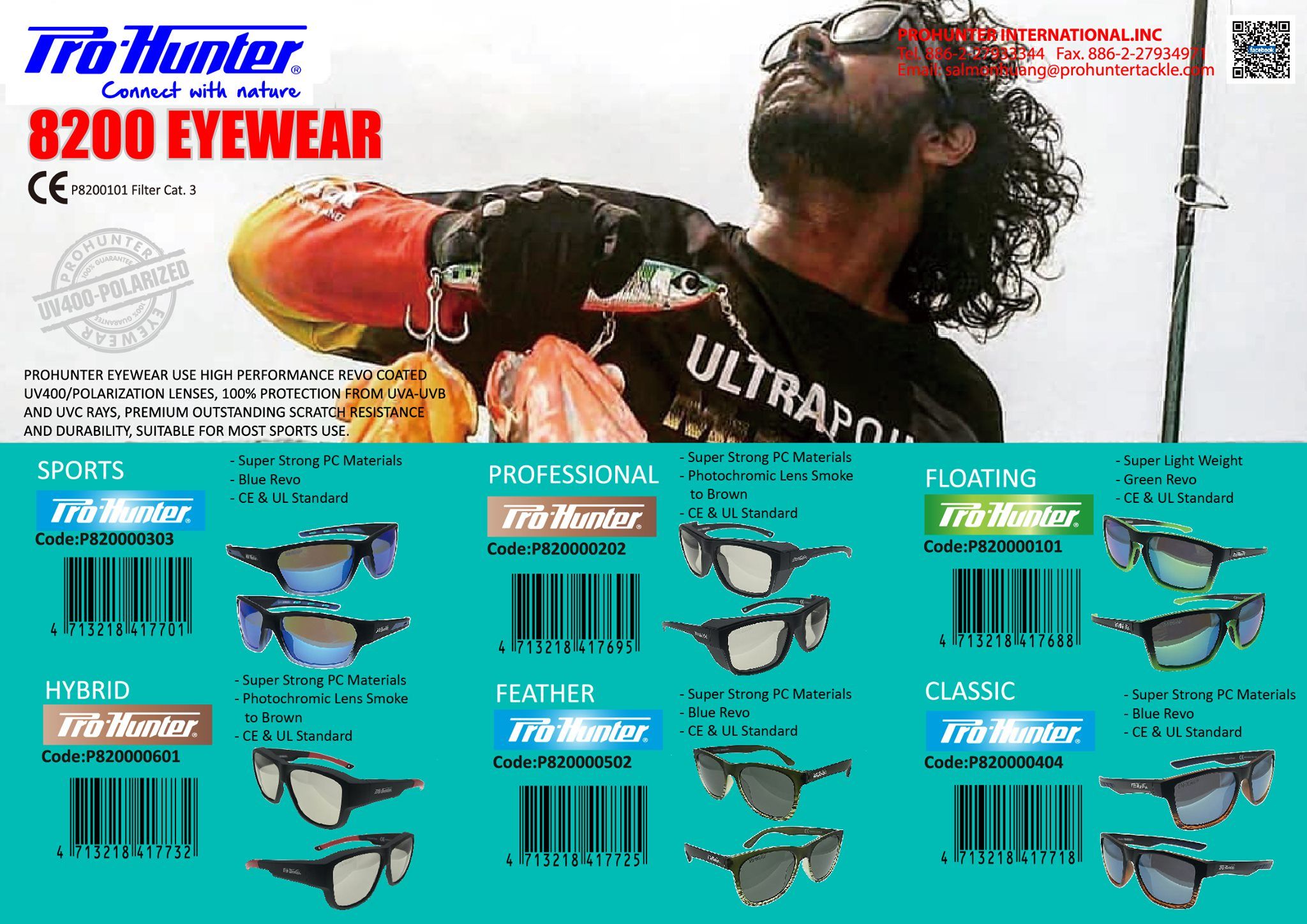 Kính mắt PROHUNTER sử dụng tròng kính phân cực/được phủ revo UV400 hiệu suất cao, bảo vệ 100% khỏi tia UVA-UVB và UVC, khả năng chống trầy xước và độ bền cao cấp vượt trội, phù hợp cho hầu hết hoạt động thể thao.