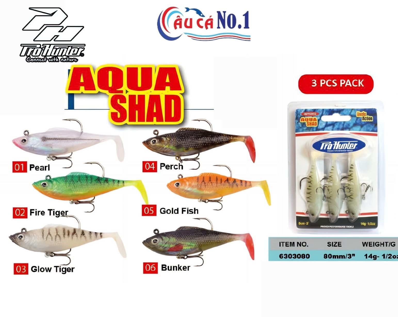 Mồi mềm Aqua Shad dùng để câu lóc chẽm . Được thiết kế bắt mắt,và có độ bền tốt .Nhúng hiệu ứng ba chiều trên cơ thể.Đôi mắt được thiết kế nhìn rất thật.Ngoài ra Mồi mềm Aqua shad còn được trang bị bộ lưỡi câu vô cùng sắc bén,trên lưng một lưỡi đơn tạo cho mồi mềm nhìn rất cứng cáp và sắc bén.